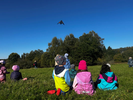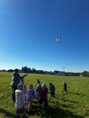 Und bei trockenem Wetter waren wir zusammen Drachen steigen. Das hat großen Spaß gemacht !